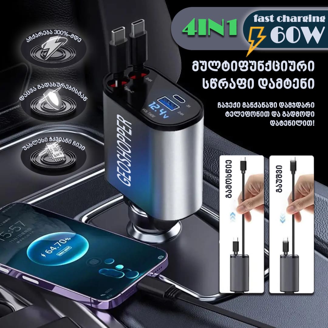 ღირსეული დამტენია. როგორც იქნა მომიწესრიგდა სალონი და ეს მიხლართულ - ჩახლართული კაბელები აღარ მიყრია სალონში. სწრაფი დატენვაც მუშაობს და იმედა დიდხანს იმუშავებს. ხარისხი კარგი ჩანს. ჩემი რეკომენდაციები ყველას. კარგი რამეა ნამდვილად.